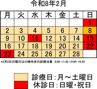 令和8年2月8日(日)川崎市休日診療当番